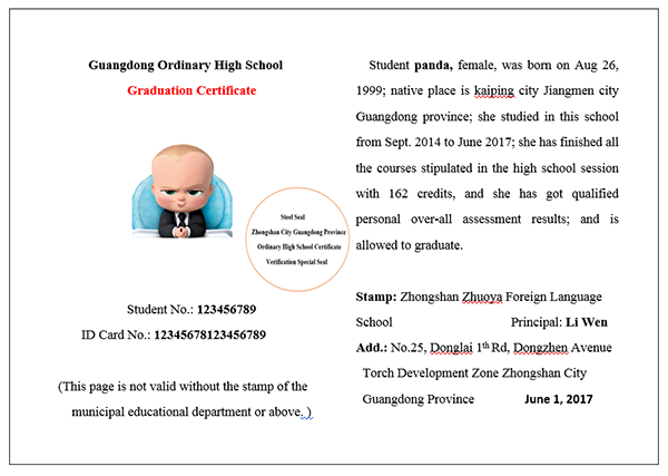 留學(xué)高中畢業(yè)證英文翻譯模板(免費(fèi)提供下載)04-18